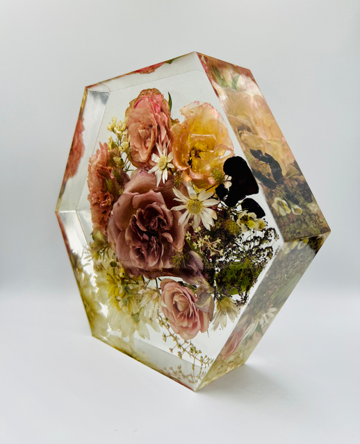 Az epoxigyanta egy sokrétű, komplex anyag, aminek a felhasználásával lehetőség nyílik a menyasszonyi csokrod megőrzésére, így az idő múlásával is a legszebb formájukban tündökölhetnek életetek egyik legfontosabb napjának virágai. Ezzel a modern virágtartósítási módszerrel egy csodálatos esküvői emléket készítek, amire rápillantva újra felidézhetitek az esküvőtök legszebb pillanatait.