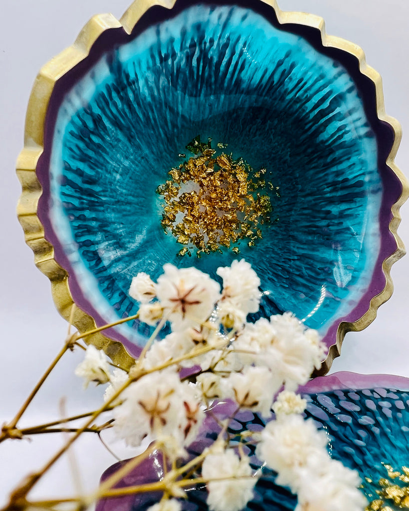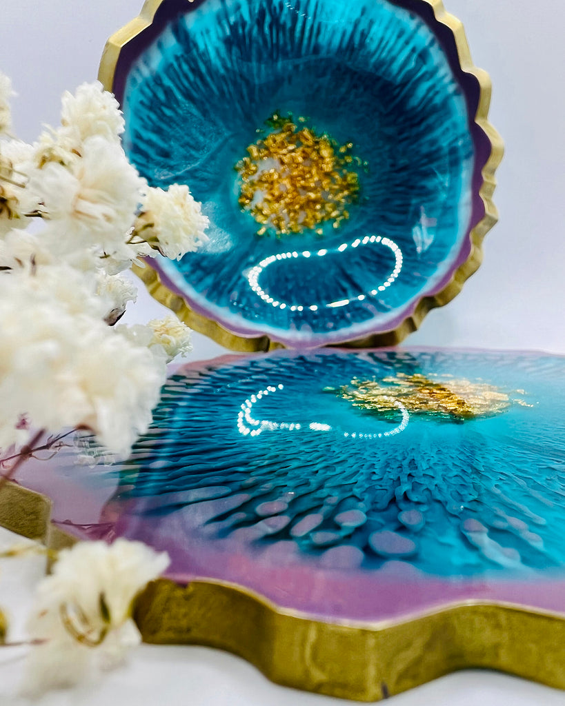 Ezek a műgyantából készült egyedi poháralátétek nem csak a bútoraid épségére vigyáznak, hanem színvilágukkal és formájukkal még a lakásodat is díszítik. A kis tálak felhasználása ràd van bízva, ékszereid, kulcsaid szuper helye lesz. Akkor is tökéletes választás, ha ajándéknak szánod, hiszen ki ne örülne egy garantáltan egyedi kiegészítőnek, ami biztosan nem jön szembe veled máshol? Tisztítás: puha, nedves törlőruhával, mosogatógépben nem mosható!