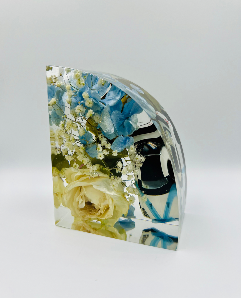Megőriznéd a menyasszonyi csokrod virágait és azt szeretnéd, hogy olyanok maradjanak, mint amilyenek voltak az esküvőtök napján? Válaszd a legmodernebb virágtartósítási módszert, aminek köszönhetően a virágaid a legszebb formájukban maradhatnak veled! Egy speciális szárítási technikának köszönhetően a növények színe és formája nem, vagy csak minimálisan változik, a szárítási folyamat után pedig epoxigyantába zárva az általad választott formában ragyoghatnak tovább. Az esküvői emlékőrző gyönyörűen fog mutatni a közös otthonotokban és rápillantva mindig eszetekbe fog jutni életetek egyik legszebb napja. :)