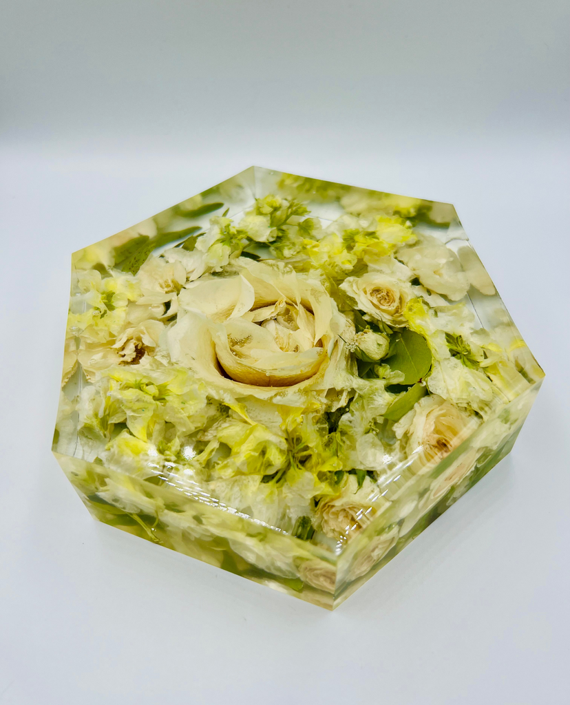 Megőriznéd a menyasszonyi csokrod virágait és azt szeretnéd, hogy olyanok maradjanak, mint amilyenek voltak az esküvőtök napján? Válaszd a legmodernebb virágtartósítási módszert, aminek köszönhetően a virágaid a legszebb formájukban maradhatnak veled! Egy speciális szárítási technikának köszönhetően a növények színe és formája nem, vagy csak minimálisan változik, a szárítási folyamat után pedig epoxigyantába zárva az általad választott formában ragyoghatnak tovább. Az esküvői emlékőrző gyönyörűen fog mutatni a közös otthonotokban és rápillantva mindig eszetekbe fog jutni életetek egyik legszebb napja. :)