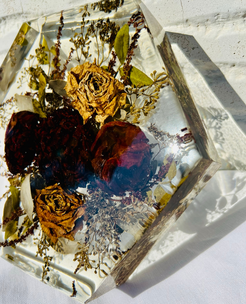 Megőriznéd a menyasszonyi csokrod virágait és azt szeretnéd, hogy olyanok maradjanak, mint amilyenek voltak az esküvőtök napján? Válaszd a legmodernebb virágtartósítási módszert, aminek köszönhetően a virágaid a legszebb formájukban maradhatnak veled! Egy speciális szárítási technikának köszönhetően a növények színe és formája nem, vagy csak minimálisan változik, a szárítási folyamat után pedig epoxigyantába zárva az általad választott formában ragyoghatnak tovább. Az esküvői emlékőrző gyönyörűen fog mutatni a közös otthonotokban és rápillantva mindig eszetekbe fog jutni életetek egyik legszebb napja. :)
