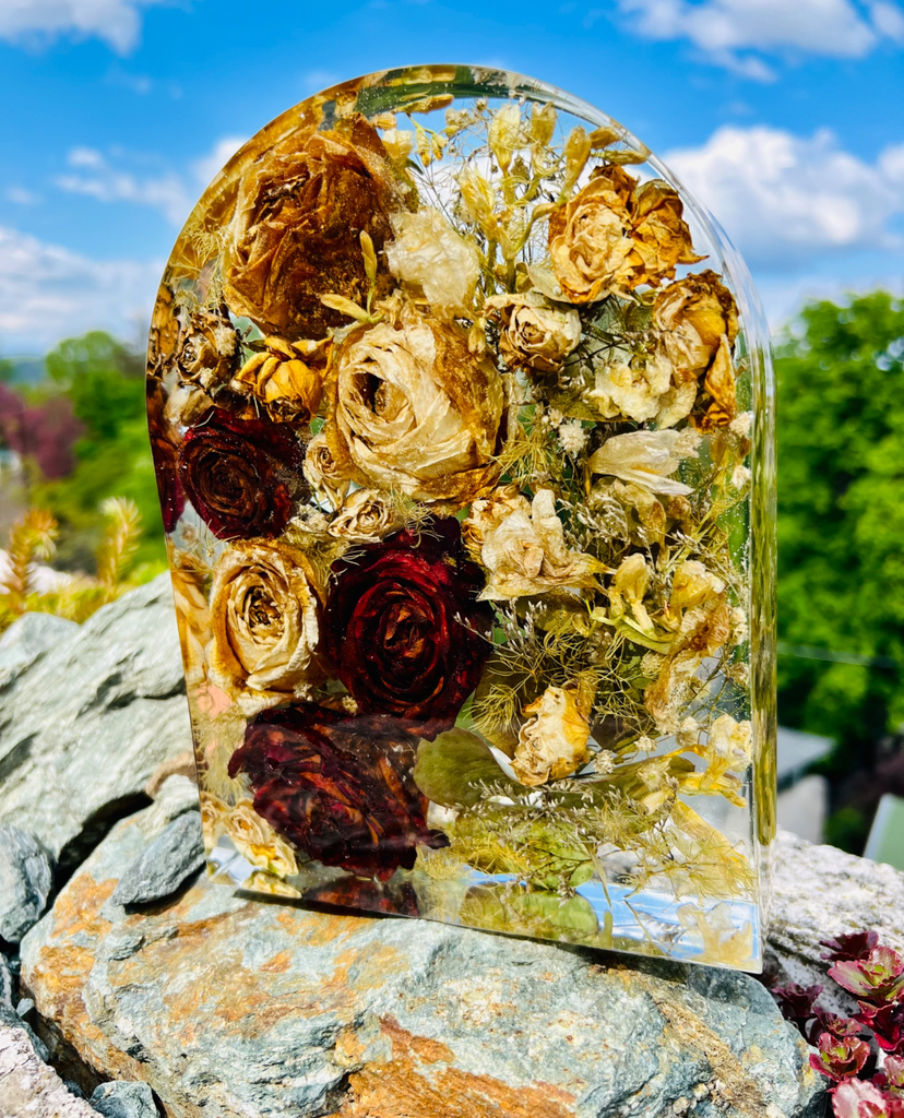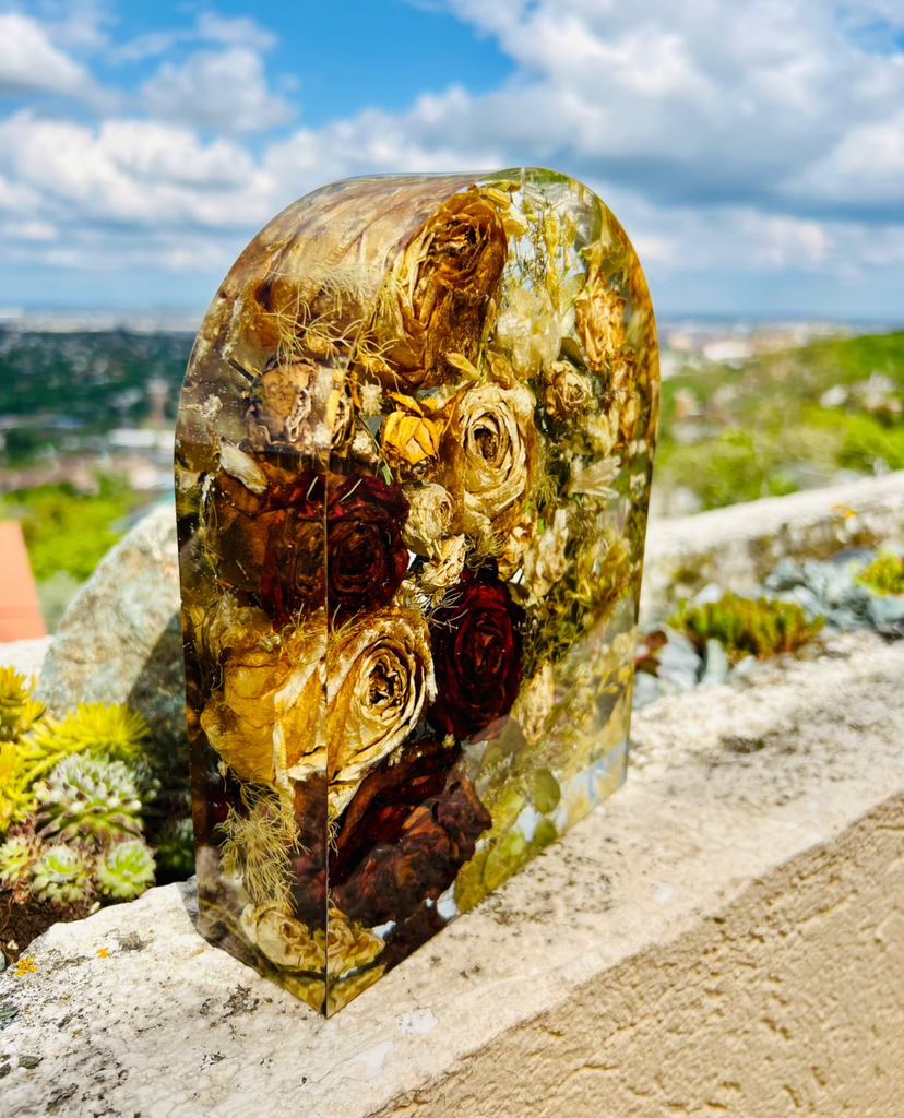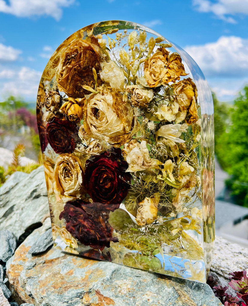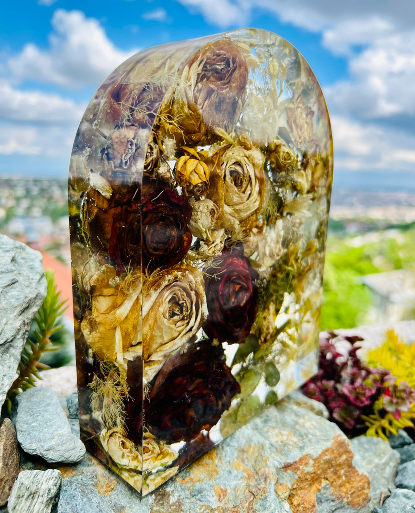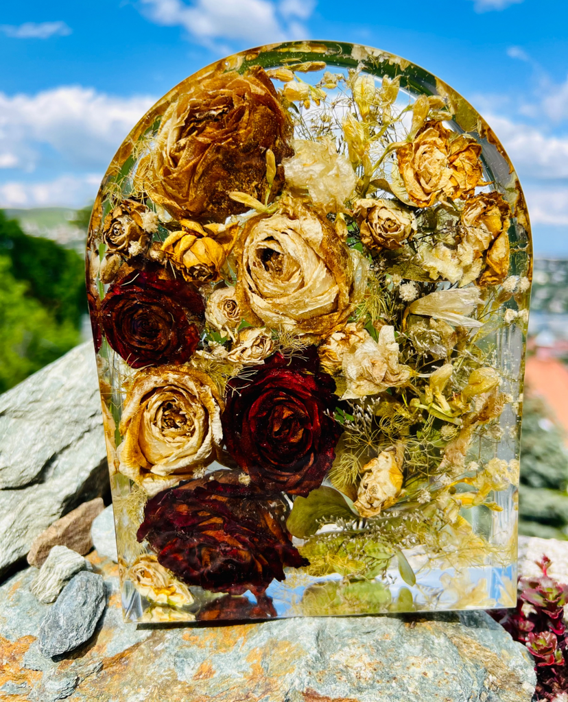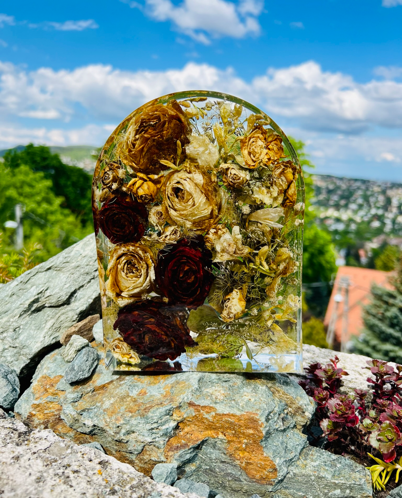 Megőriznéd a menyasszonyi csokrod virágait és azt szeretnéd, hogy olyanok maradjanak, mint amilyenek voltak az esküvőtök napján? Válaszd a legmodernebb virágtartósítási módszert, aminek köszönhetően a virágaid a legszebb formájukban maradhatnak veled! Egy speciális szárítási technikának köszönhetően a növények színe és formája nem, vagy csak minimálisan változik, a szárítási folyamat után pedig epoxigyantába zárva az általad választott formában ragyoghatnak tovább. Az esküvői emlékőrző gyönyörűen fog mutatni a közös otthonotokban és rápillantva mindig eszetekbe fog jutni életetek egyik legszebb napja. :)