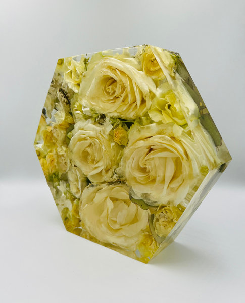 Megőriznéd a menyasszonyi csokrod virágait és azt szeretnéd, hogy olyanok maradjanak, mint amilyenek voltak az esküvőtök napján? Válaszd a legmodernebb virágtartósítási módszert, aminek köszönhetően a virágaid a legszebb formájukban maradhatnak veled! Egy speciális szárítási technikának köszönhetően a növények színe és formája nem, vagy csak minimálisan változik, a szárítási folyamat után pedig epoxigyantába zárva az általad választott formában ragyoghatnak tovább. Az esküvői emlékőrző gyönyörűen fog mutatni a közös otthonotokban és rápillantva mindig eszetekbe fog jutni életetek egyik legszebb napja. :)