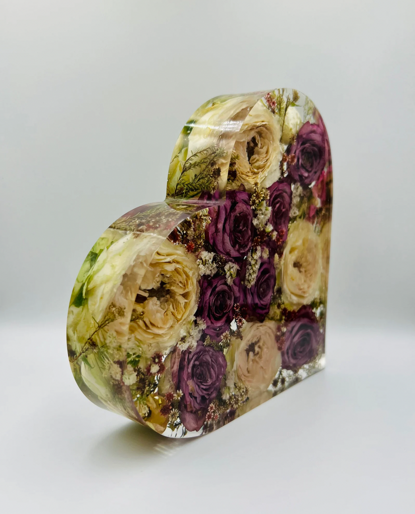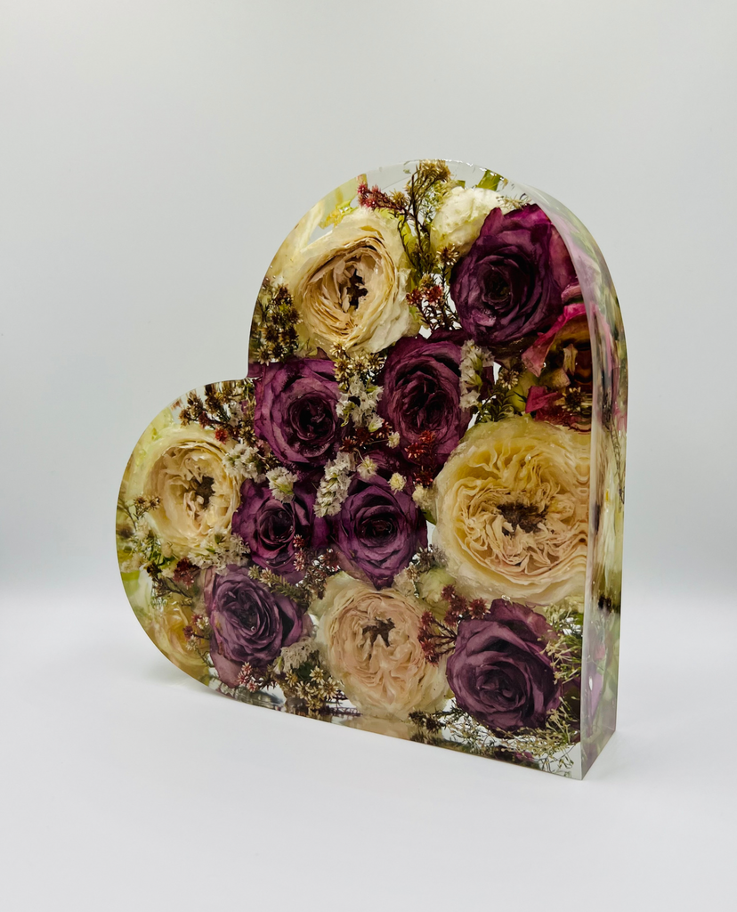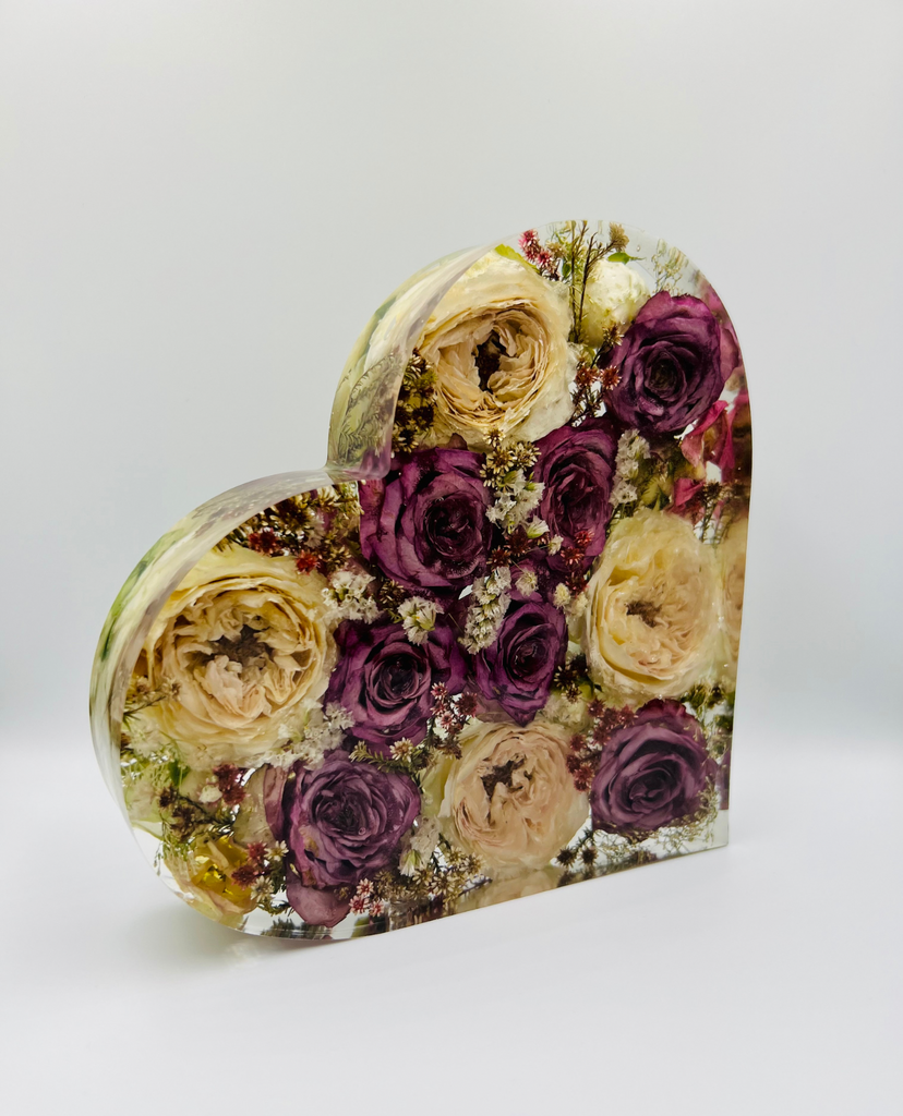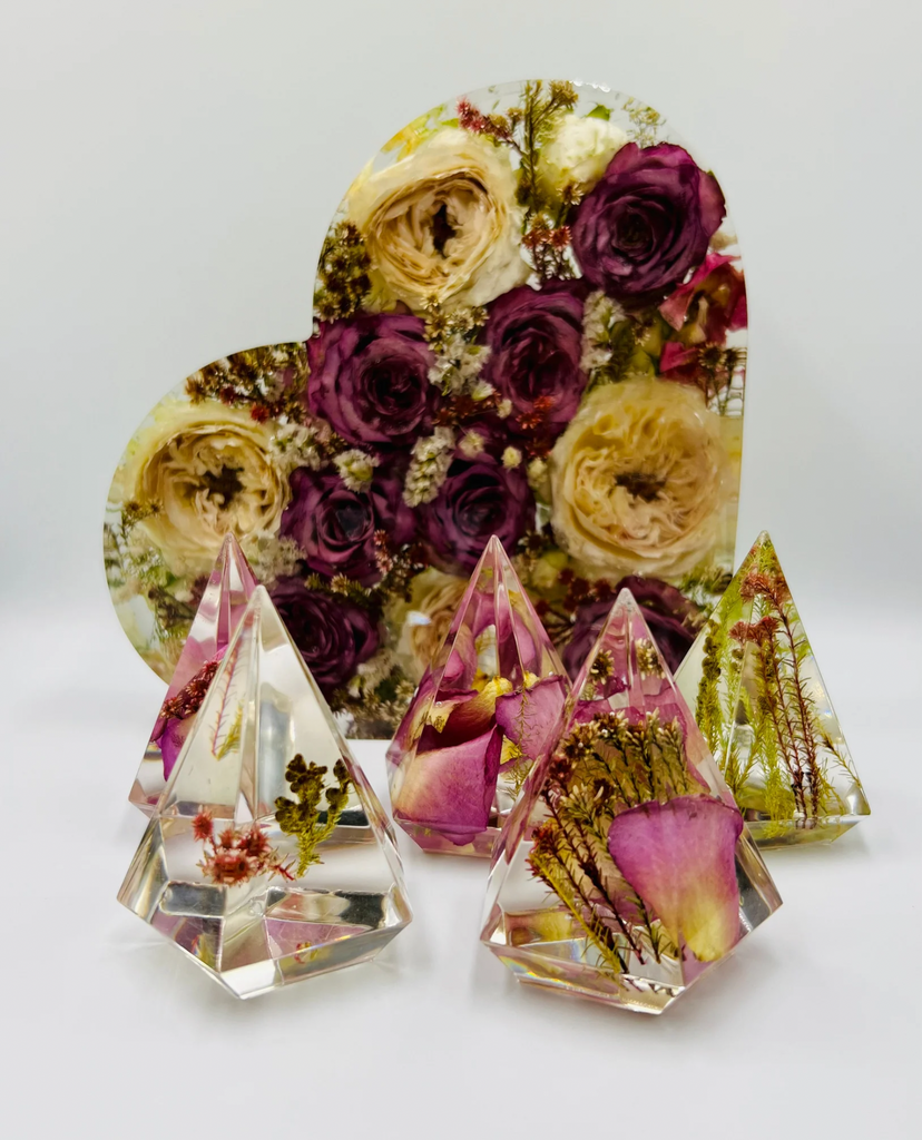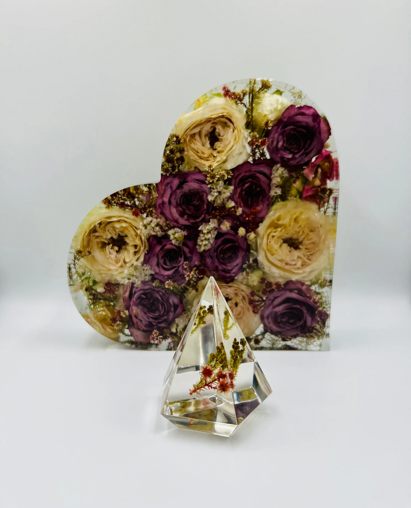 Megőriznéd a menyasszonyi csokrod virágait és azt szeretnéd, hogy olyanok maradjanak, mint amilyenek voltak az esküvőtök napján? Válaszd a legmodernebb virágtartósítási módszert, aminek köszönhetően a virágaid a legszebb formájukban maradhatnak veled! Egy speciális szárítási technikának köszönhetően a növények színe és formája nem, vagy csak minimálisan változik, a szárítási folyamat után pedig epoxigyantába zárva az általad választott formában ragyoghatnak tovább. Az esküvői emlékőrző gyönyörűen fog mutatni a közös otthonotokban és rápillantva mindig eszetekbe fog jutni életetek egyik legszebb napja. :)