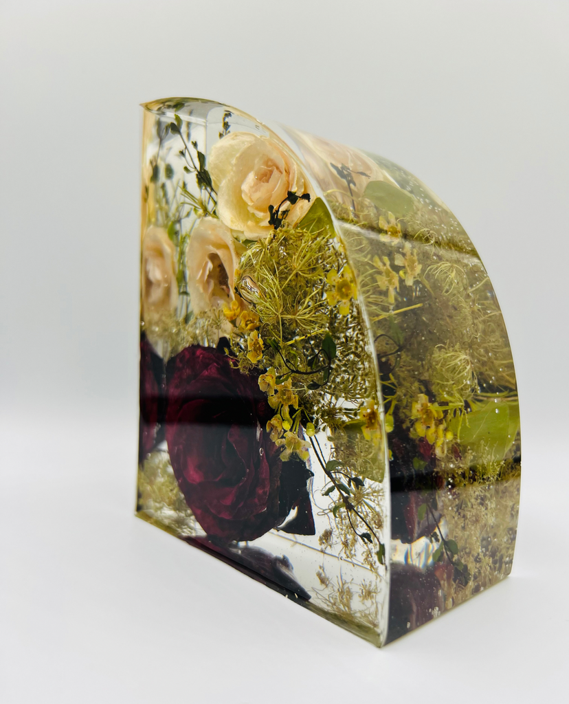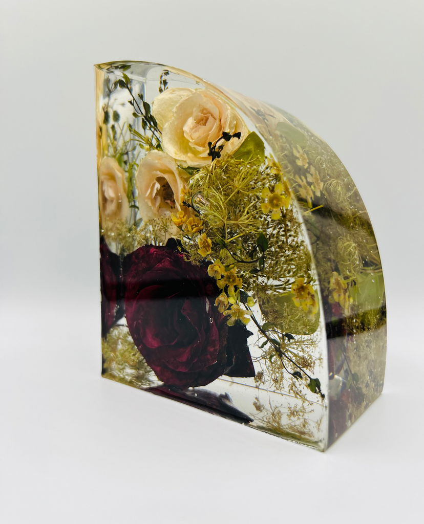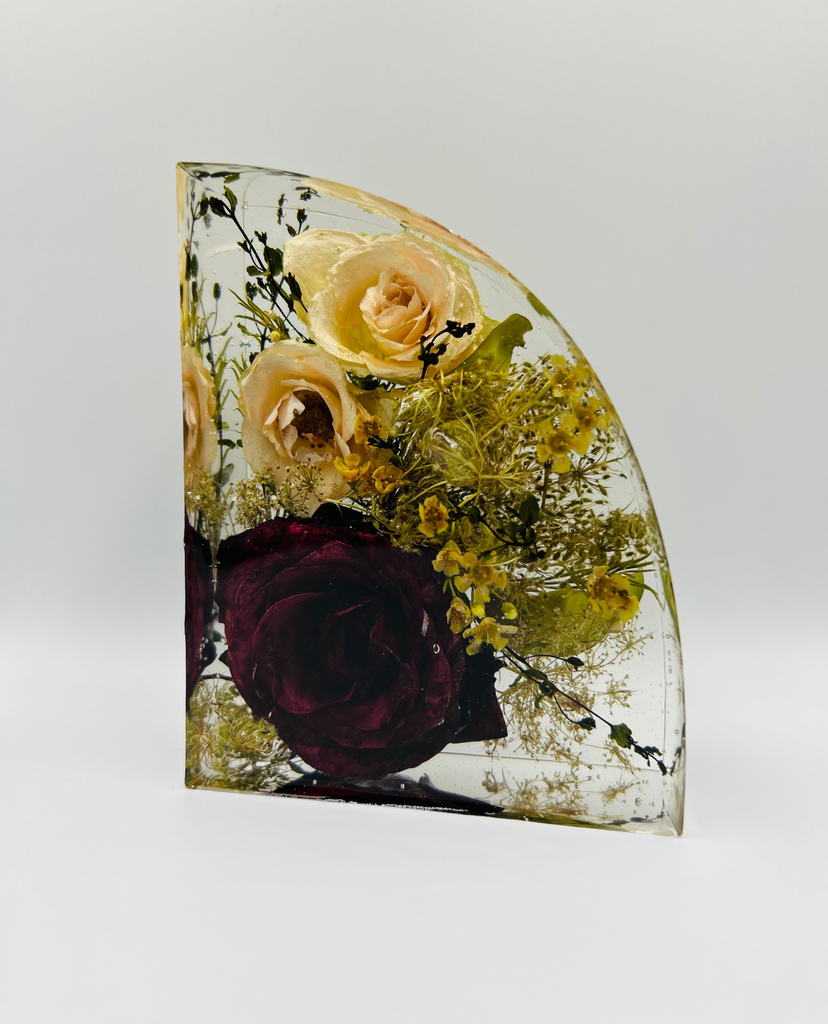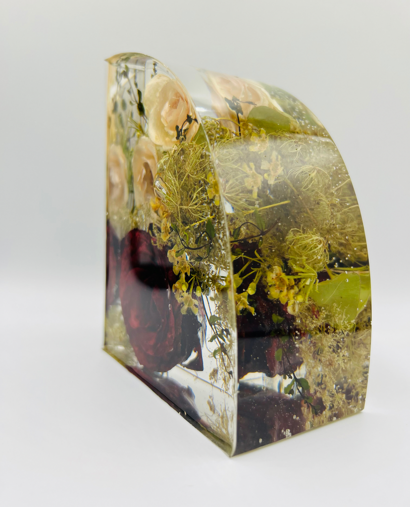 Megőriznéd a menyasszonyi csokrod virágait és azt szeretnéd, hogy olyanok maradjanak, mint amilyenek voltak az esküvőtök napján? Válaszd a legmodernebb virágtartósítási módszert, aminek köszönhetően a virágaid a legszebb formájukban maradhatnak veled! Egy speciális szárítási technikának köszönhetően a növények színe és formája nem, vagy csak minimálisan változik, a szárítási folyamat után pedig epoxigyantába zárva az általad választott formában ragyoghatnak tovább. Az esküvői emlékőrző gyönyörűen fog mutatni a közös otthonotokban és rápillantva mindig eszetekbe fog jutni életetek egyik legszebb napja. :)