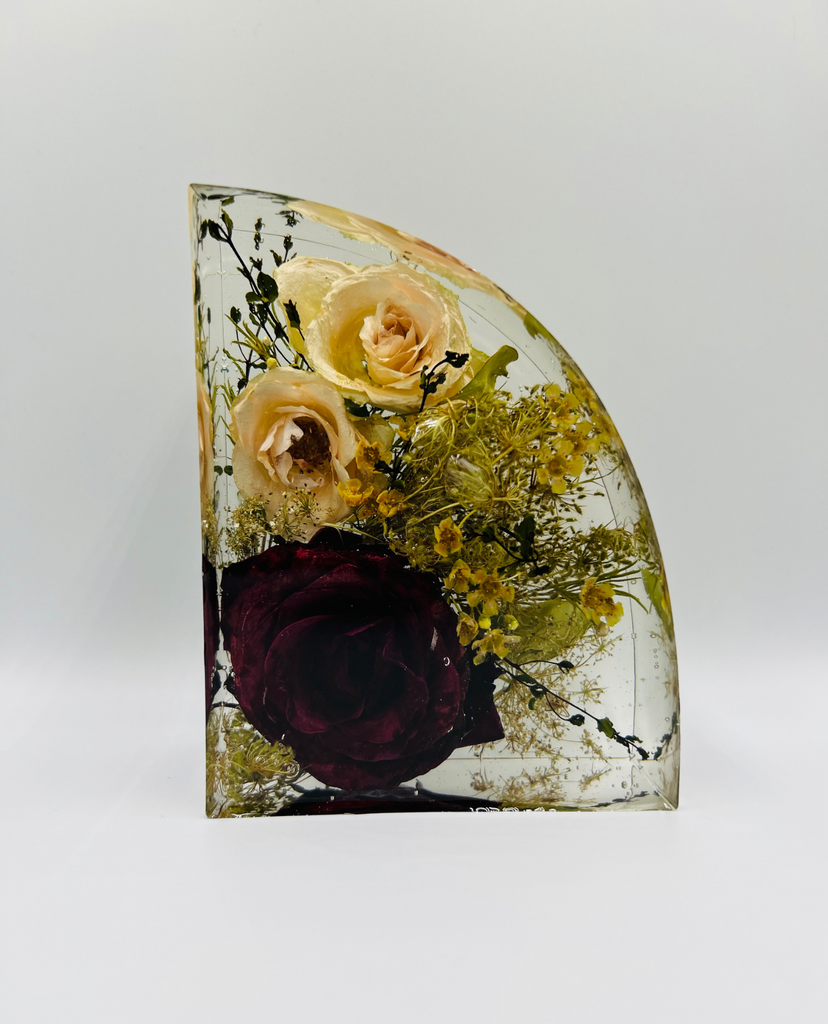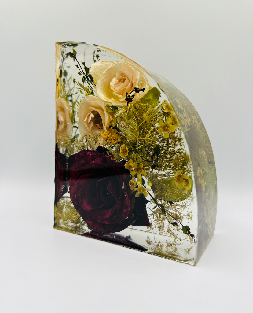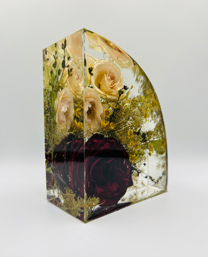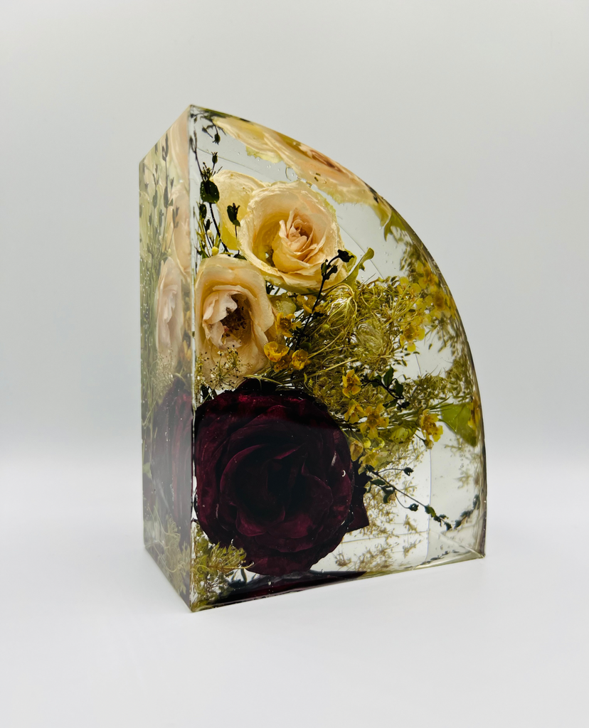 Megőriznéd a menyasszonyi csokrod virágait és azt szeretnéd, hogy olyanok maradjanak, mint amilyenek voltak az esküvőtök napján? Válaszd a legmodernebb virágtartósítási módszert, aminek köszönhetően a virágaid a legszebb formájukban maradhatnak veled! Egy speciális szárítási technikának köszönhetően a növények színe és formája nem, vagy csak minimálisan változik, a szárítási folyamat után pedig epoxigyantába zárva az általad választott formában ragyoghatnak tovább. Az esküvői emlékőrző gyönyörűen fog mutatni a közös otthonotokban és rápillantva mindig eszetekbe fog jutni életetek egyik legszebb napja. :)