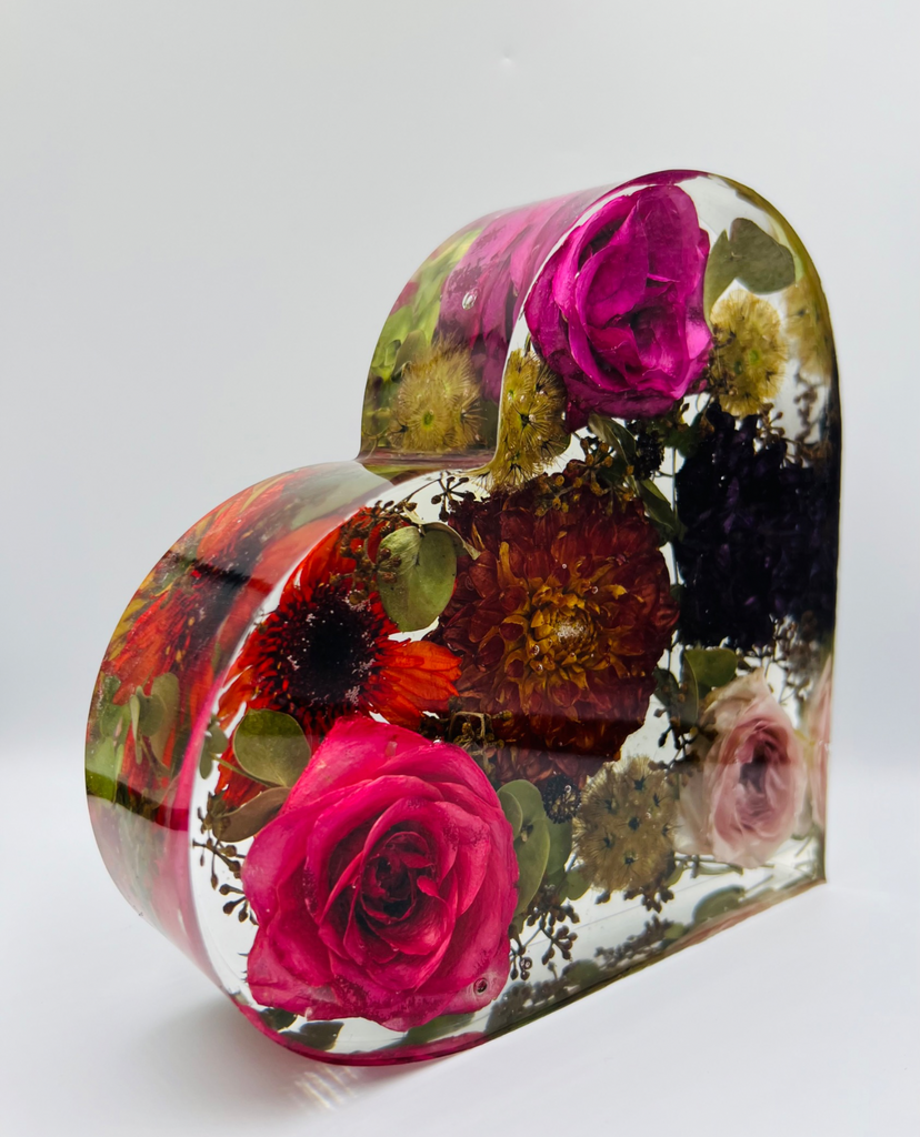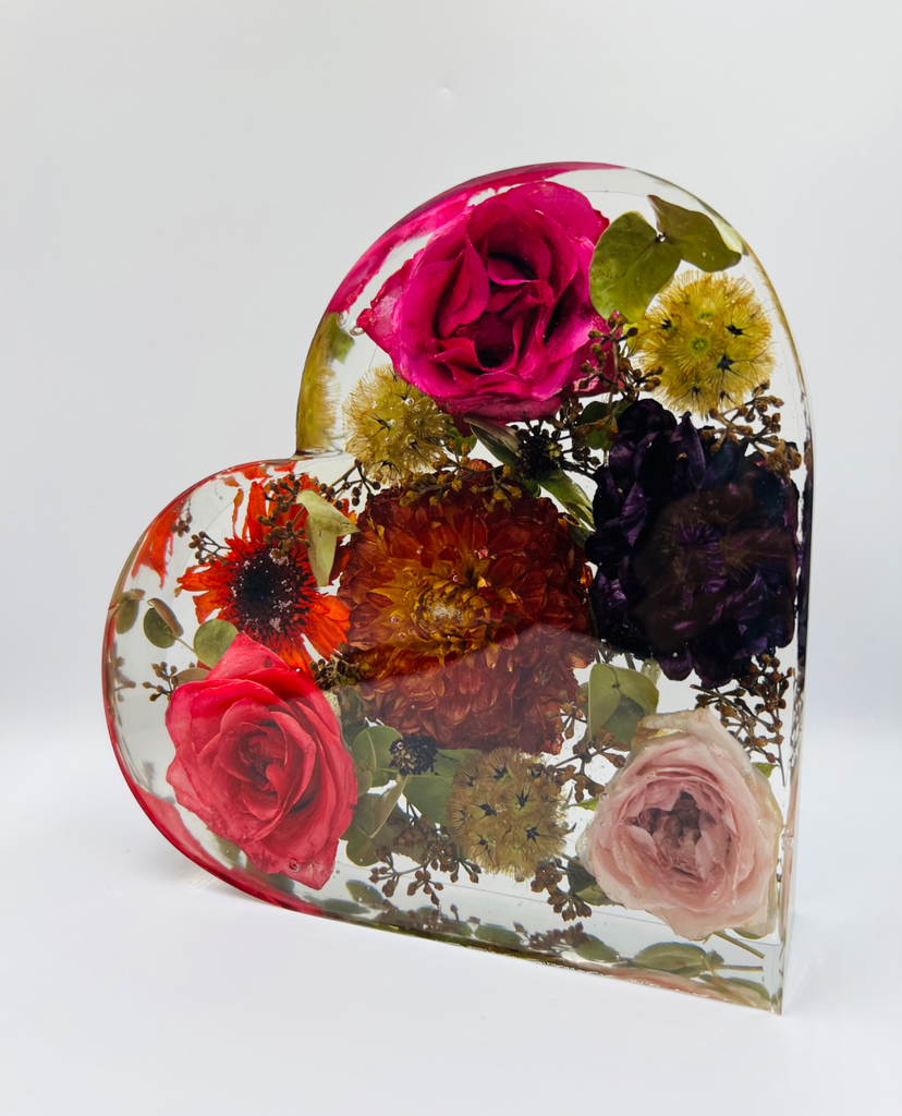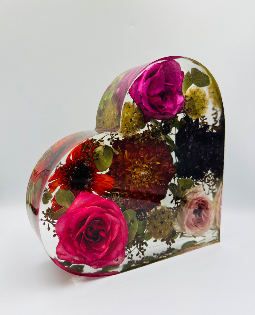 Megőriznéd a menyasszonyi csokrod virágait és azt szeretnéd, hogy olyanok maradjanak, mint amilyenek voltak az esküvőtök napján? Válaszd a legmodernebb virágtartósítási módszert, aminek köszönhetően a virágaid a legszebb formájukban maradhatnak veled! Egy speciális szárítási technikának köszönhetően a növények színe és formája nem, vagy csak minimálisan változik, a szárítási folyamat után pedig epoxigyantába zárva az általad választott formában ragyoghatnak tovább. Az esküvői emlékőrző gyönyörűen fog mutatni a közös otthonotokban és rápillantva mindig eszetekbe fog jutni életetek egyik legszebb napja. :)