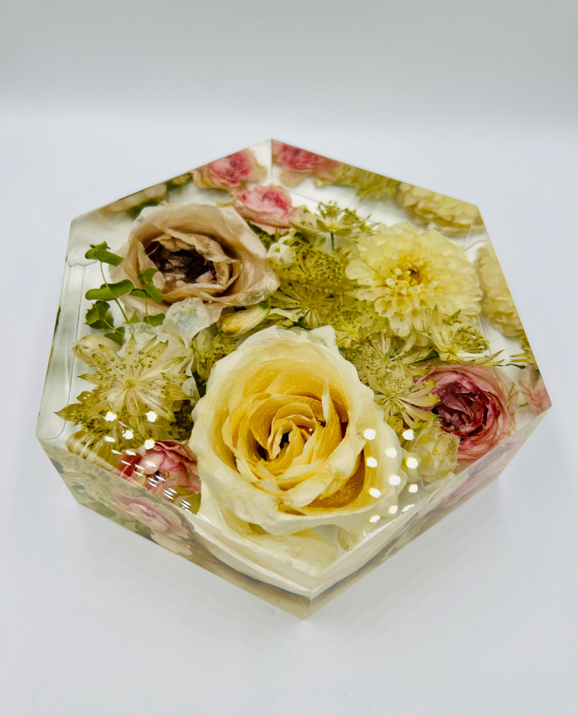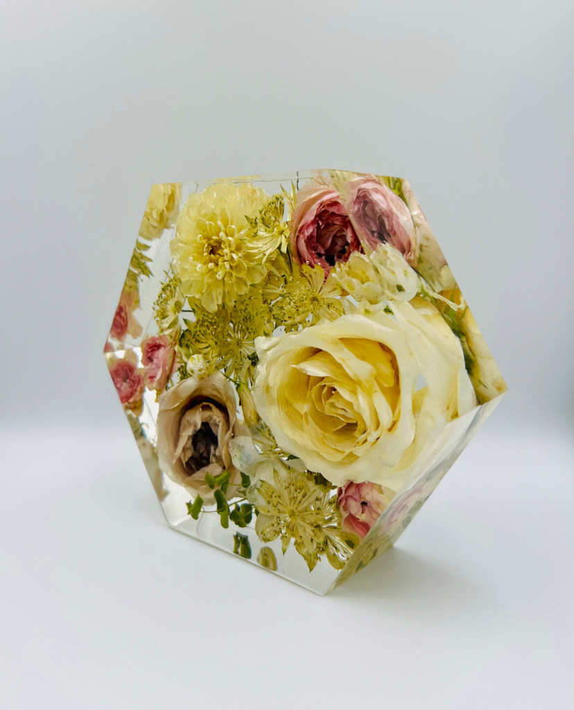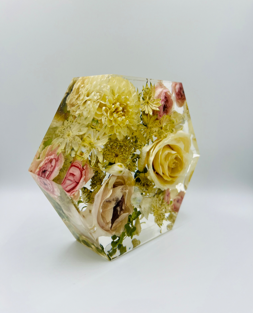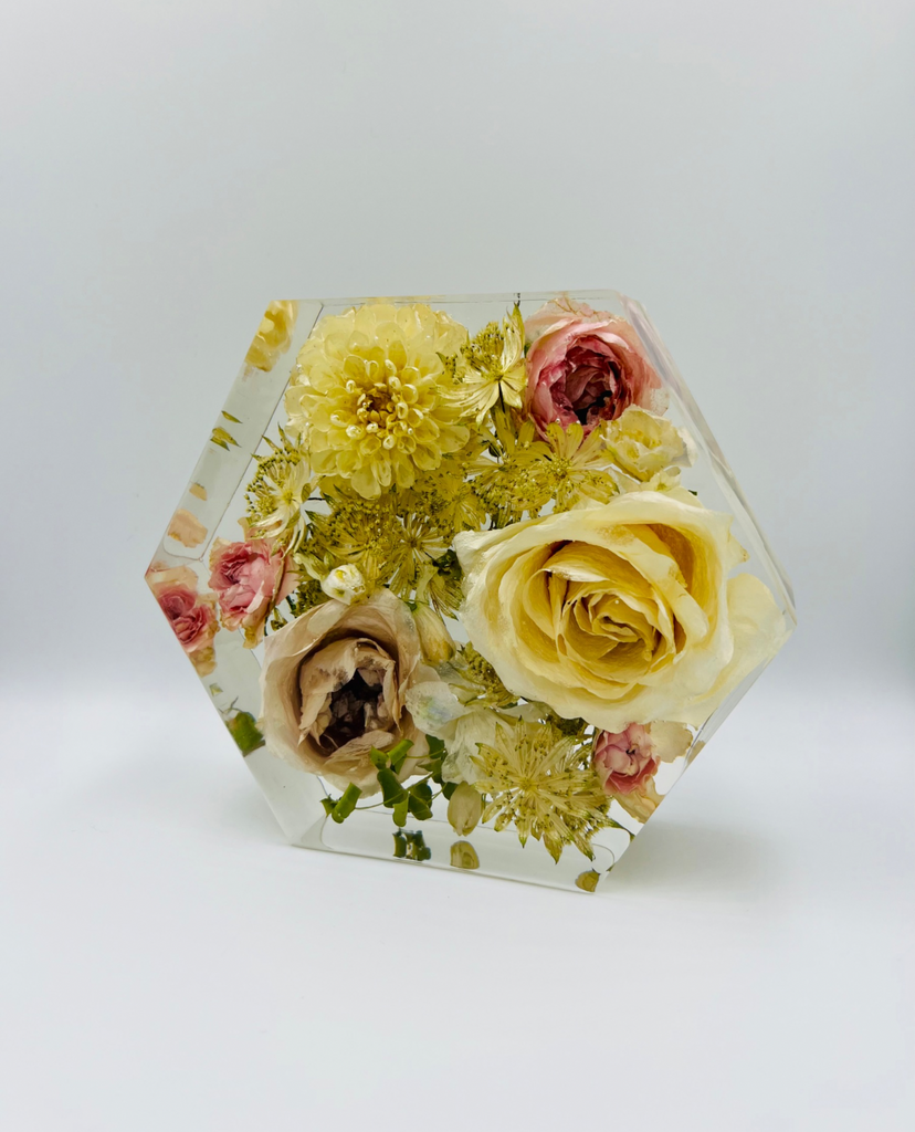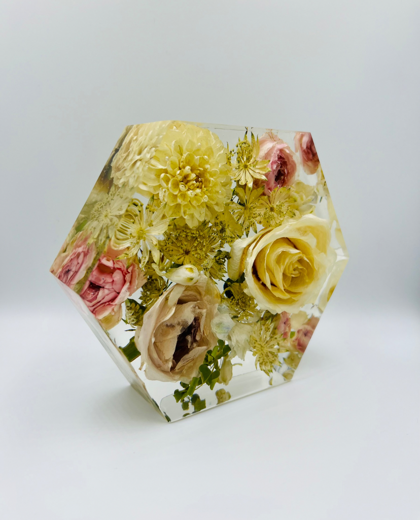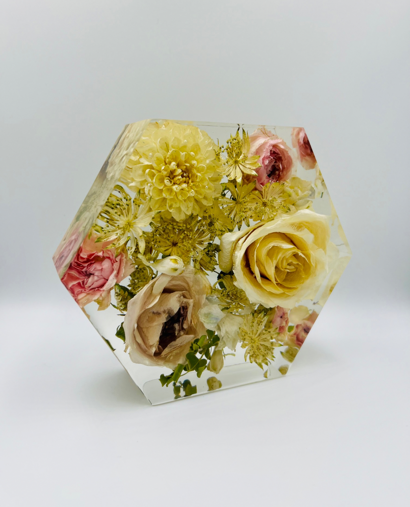 Megőriznéd a menyasszonyi csokrod virágait és azt szeretnéd, hogy olyanok maradjanak, mint amilyenek voltak az esküvőtök napján? Válaszd a legmodernebb virágtartósítási módszert, aminek köszönhetően a virágaid a legszebb formájukban maradhatnak veled! Egy speciális szárítási technikának köszönhetően a növények színe és formája nem, vagy csak minimálisan változik, a szárítási folyamat után pedig epoxigyantába zárva az általad választott formában ragyoghatnak tovább. Az esküvői emlékőrző gyönyörűen fog mutatni a közös otthonotokban és rápillantva mindig eszetekbe fog jutni életetek egyik legszebb napja. :)