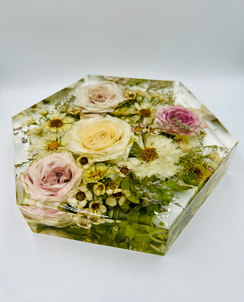 Megőriznéd a menyasszonyi csokrod virágait és azt szeretnéd, hogy olyanok maradjanak, mint amilyenek voltak az esküvőtök napján? Válaszd a legmodernebb virágtartósítási módszert, aminek köszönhetően a virágaid a legszebb formájukban maradhatnak veled! Egy speciális szárítási technikának köszönhetően a növények színe és formája nem, vagy csak minimálisan változik, a szárítási folyamat után pedig epoxigyantába zárva az általad választott formában ragyoghatnak tovább. Az esküvői emlékőrző gyönyörűen fog mutatni a közös otthonotokban és rápillantva mindig eszetekbe fog jutni életetek egyik legszebb napja. :)