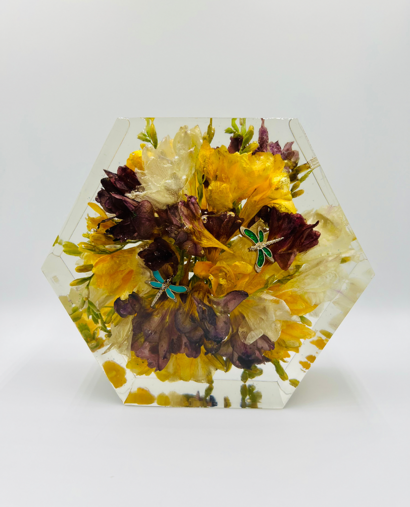 Megőriznéd a menyasszonyi csokrod virágait és azt szeretnéd, hogy olyanok maradjanak, mint amilyenek voltak az esküvőtök napján? Válaszd a legmodernebb virágtartósítási módszert, aminek köszönhetően a virágaid a legszebb formájukban maradhatnak veled! Egy speciális szárítási technikának köszönhetően a növények színe és formája nem, vagy csak minimálisan változik, a szárítási folyamat után pedig epoxigyantába zárva az általad választott formában ragyoghatnak tovább. Az esküvői emlékőrző gyönyörűen fog mutatni a közös otthonotokban és rápillantva mindig eszetekbe fog jutni életetek egyik legszebb napja. :)