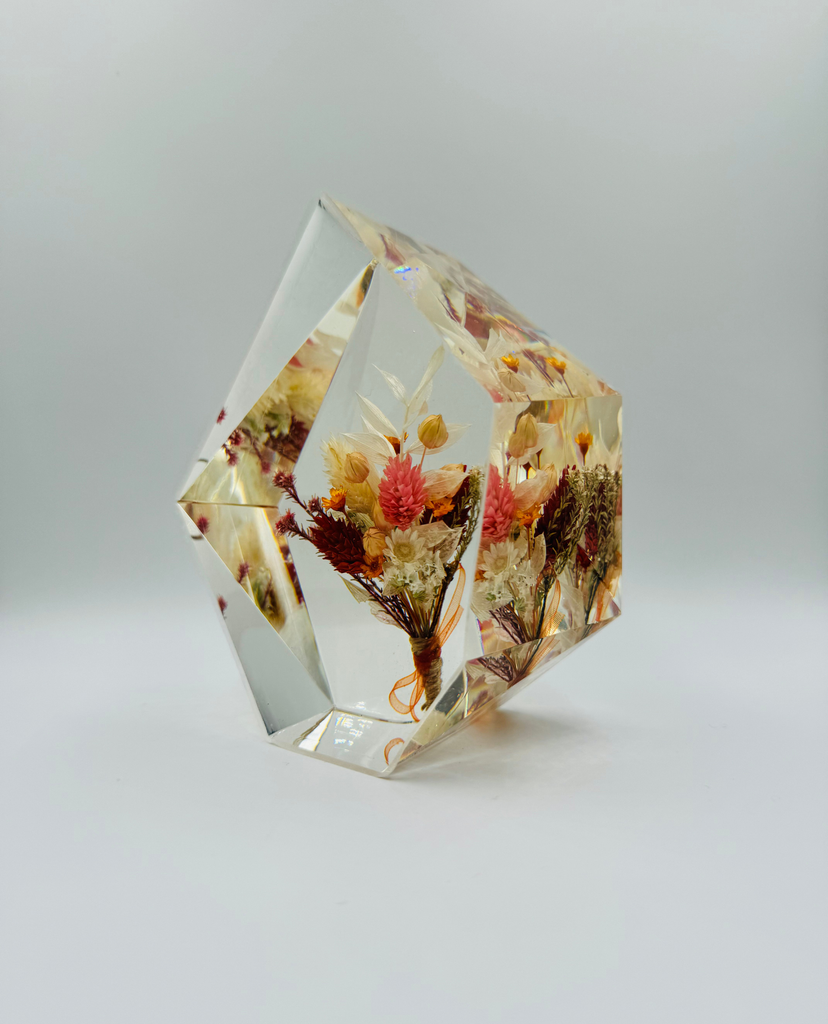 Megőriznéd a menyasszonyi csokrod virágait és azt szeretnéd, hogy olyanok maradjanak, mint amilyenek voltak az esküvőtök napján? Válaszd a legmodernebb virágtartósítási módszert, aminek köszönhetően a virágaid a legszebb formájukban maradhatnak veled! Egy speciális szárítási technikának köszönhetően a növények színe és formája nem, vagy csak minimálisan változik, a szárítási folyamat után pedig epoxigyantába zárva az általad választott formában ragyoghatnak tovább. Az esküvői emlékőrző gyönyörűen fog mutatni a közös otthonotokban és rápillantva mindig eszetekbe fog jutni életetek egyik legszebb napja. :)