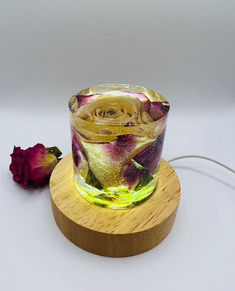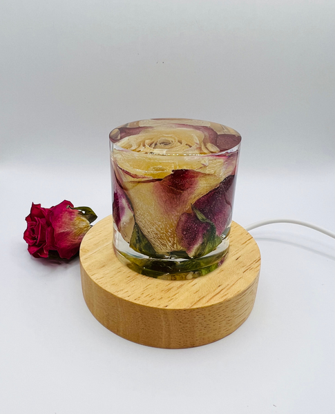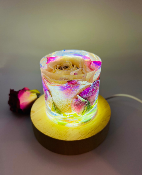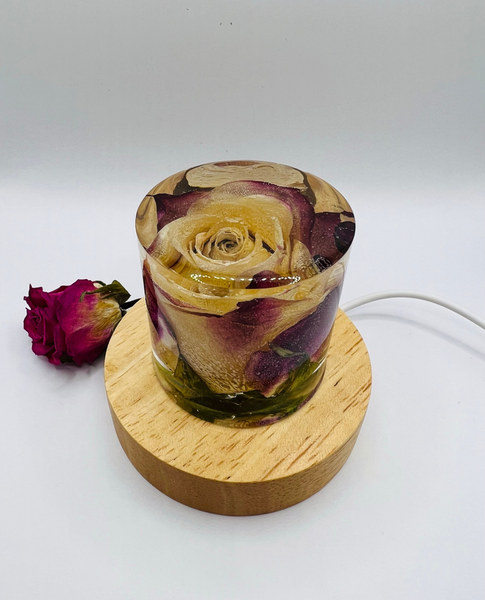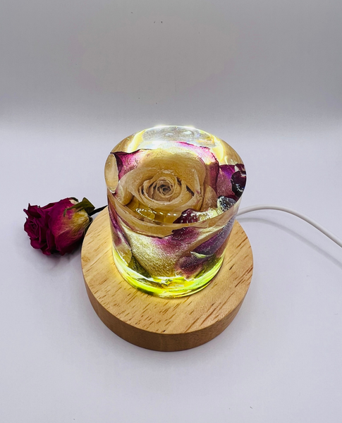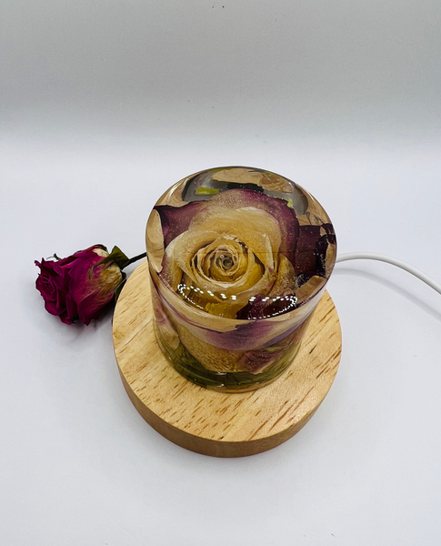 Epoxigyanta és szárított virágok kombinációjával készült hangulatvilágítás, ami beragyogja és vidám hangulatot kölcsönöz az otthonodnak. Minden darab kézműves, egyedi termék.
